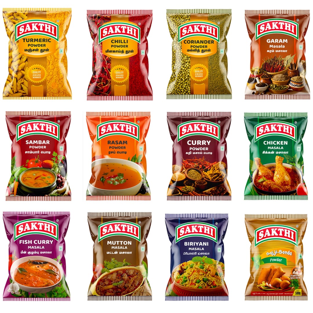 SAKTHI – 11 Masala Combo Packs – 100gm | Bajji-Bonda Powder 500gm